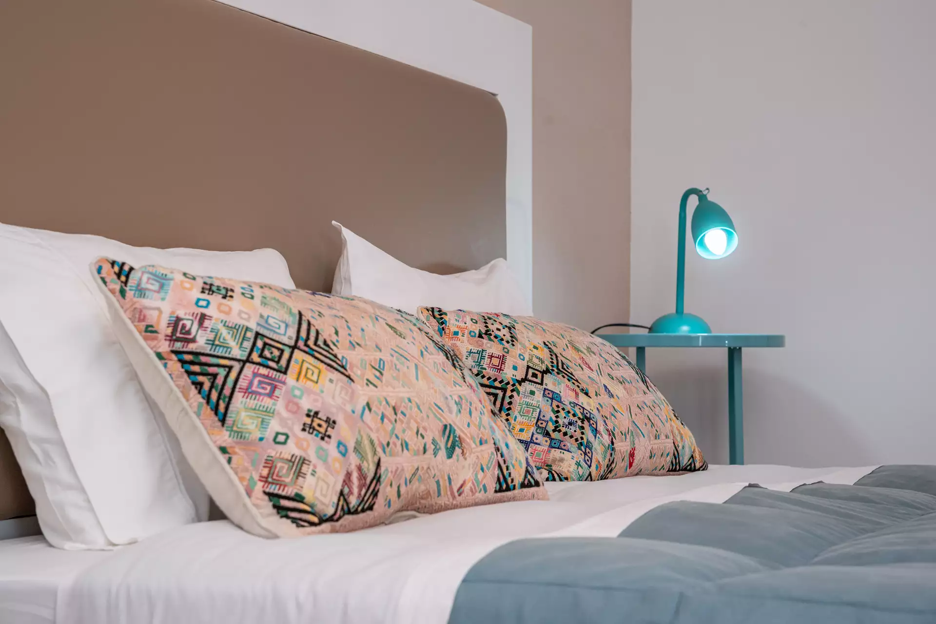 Um estúdio familiar amplo e luminoso com 45 m², localizado no primeiro andar, ideal para famílias ou grupos até 4 pessoas. Dispõe de uma kitchenette bem equipada com frigorífico, micro-ondas e utensílios, permitindo preparar refeições simples com todo o conforto. A casa de banho privativa inclui duche e secador de cabelo. O espaço em open space oferece uma zona de dormir com três camas, uma mesa de refeições, uma área de estar acolhedora com televisão por cabo e vista para o pátio interior. O quarto conta ainda com ar condicionado e uma estação de chá e café para maior comodidade.